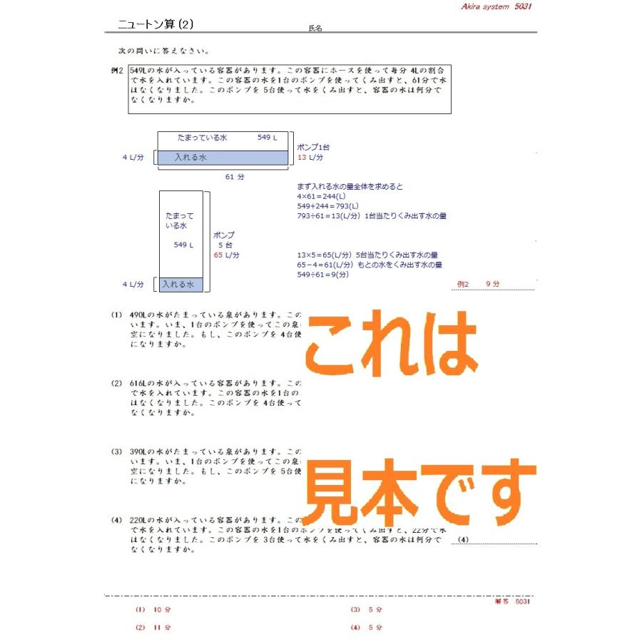 解説中学受験算数 ニュートン算 Ks210 算数問題集のアキラストア 通販 Yahoo ショッピング